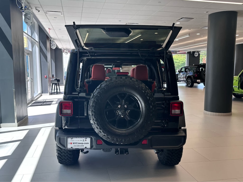 QUICK ORDER PACKAGE 22W WILLYS Engine: 2.0L I4 DOHC DI Turbo w/ESS, Transmission: 8-Speed Automatic (850RE), 7 & 4 Pin Wiring Harness, Conventional Differential Front Axle, 4-Wheel Drive Swing Gate Decal, Black Grille, Injection Molded Black Rear Bumper, Dana M210 Wide HD Tube Front Axle, Daytime Running Lamps LED Accents, Front LED Fog Lamps, LED Premium Reflector Headlamps, E-Locker Rear Axle, Corning Gorilla Glass, Security Alarm, Class II Receiver Hitch, Mold In Color Bumper w/Gloss Black, Advanced Brake Assist, Automatic Headlamps, Off-Road Plus Mode, Willys Hood Decal, Full Speed Forward Collision Warning Plus, Rock Protection Sill Rails, 97 MPH Vehicle Max Speed Calibration, Power Heated Mirrors, Enhanced Adaptive Cruise Control, Auxiliary Switches, Dana M220 Wide Rear Axle, Molded, SKY 1-TOUCH POWER TOP Rear Window Defroster, Rear Window Wiper/Washer, Removable Rear Quarter Windows, Power Top Quarter Window Storage Bag
