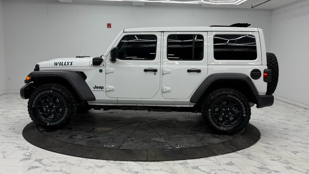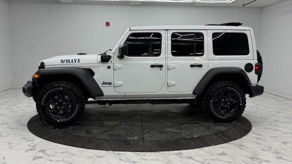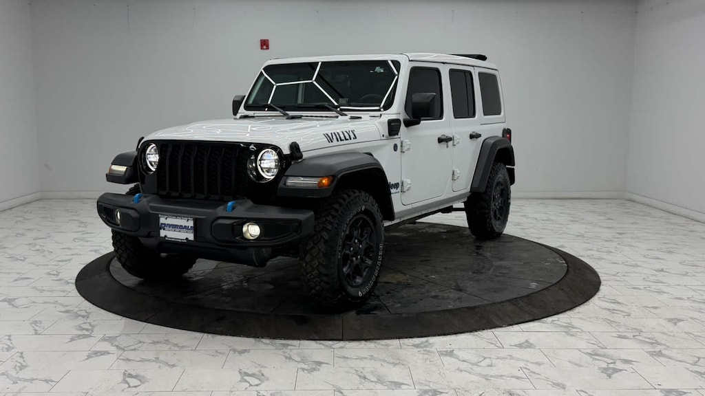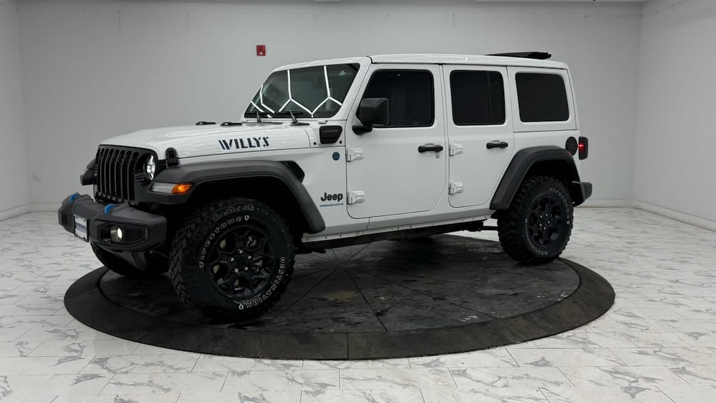 Media Hub - 2 USBs (Both Charge Only), Rear Window Defroster, Remote USB Port - Charge Only, 115-Volt Auxiliary Power Outlet, 8.4 Radio Group, Off-Road Info Pages, SiriusXM Traffic Plus, HD Radio, Radio: Uconnect 4C Nav w/8.4 Display, For Details, Visit DriveUconnect.com, Rear View Auto Dim Mirror, 1-Year SiriusXM Guardian Trial, GPS Navigation, SiriusXM Travel Link, Emergency/Assistance Call, 8.4 Touchscreen Display, Rear Window Wiper/Washer, Removable Rear Quarter Windows, Power Top Quarter Window Storage Bag, Sky 1-Touch Power Top, Console Bin Task Light, Heated Steering Wheel, Remote Start System, Heated Front Seats, Class II Receiver Hitch, 700 Amp Maintenance Free Battery, 7 & 4 Pin Wiring Harness, Auxiliary Switches, Universal Garage Door Opener, Engine: 2.0L I4 DOHC DI Turbo PHEV, Transmission: 8-Speed Auto 8P75PH PHEV, Willys, 4xe 4-Wheel Drive Swing Gate Decal, Willys 4xe Hood Decal, Black Grille, MOPAR All-Weather Floor Mats, Rock Protection Sill Rails, 97 MPH Vehicle Max Speed Calibration, Anti-Spin Differential Rear Axle, Molded-In-Color Fender Flares (2-Piece), Front LED Fog Lamps, LED Premium Reflector Headlamps, LED Headlamp & Fog Lamp Group, (STD), (STD).